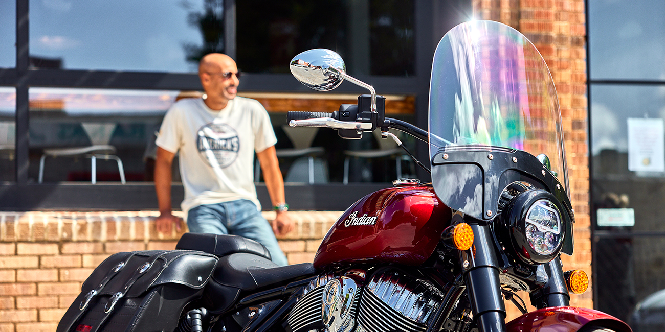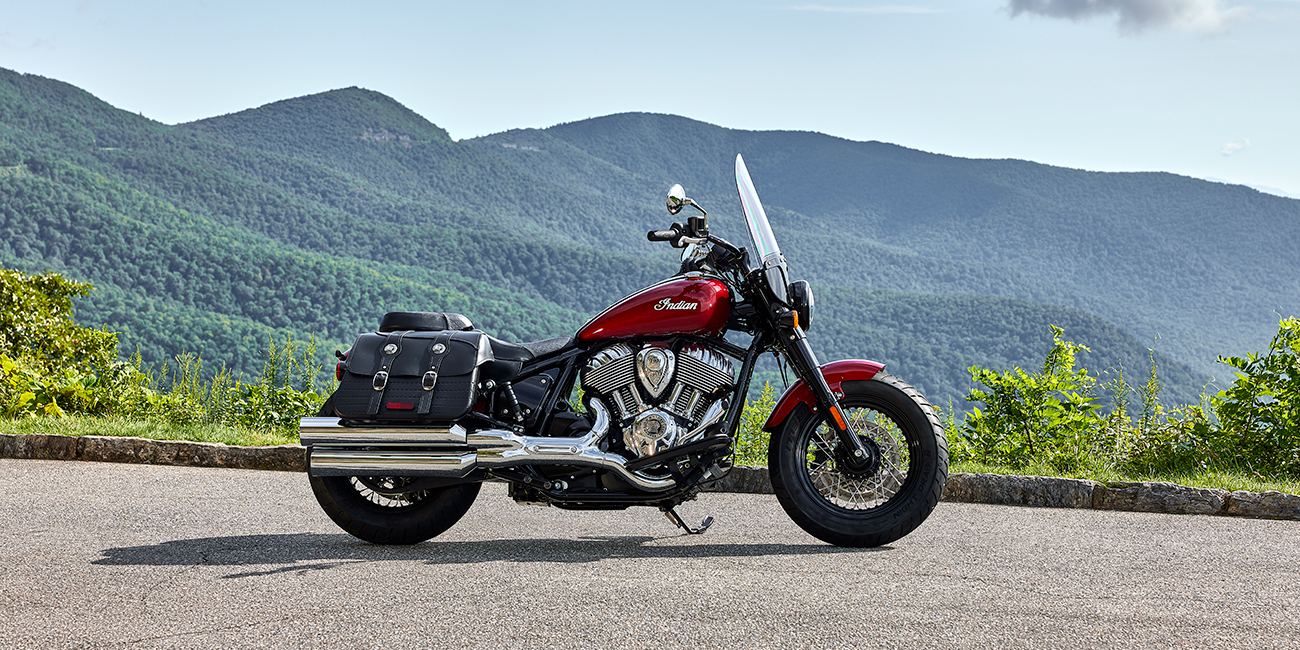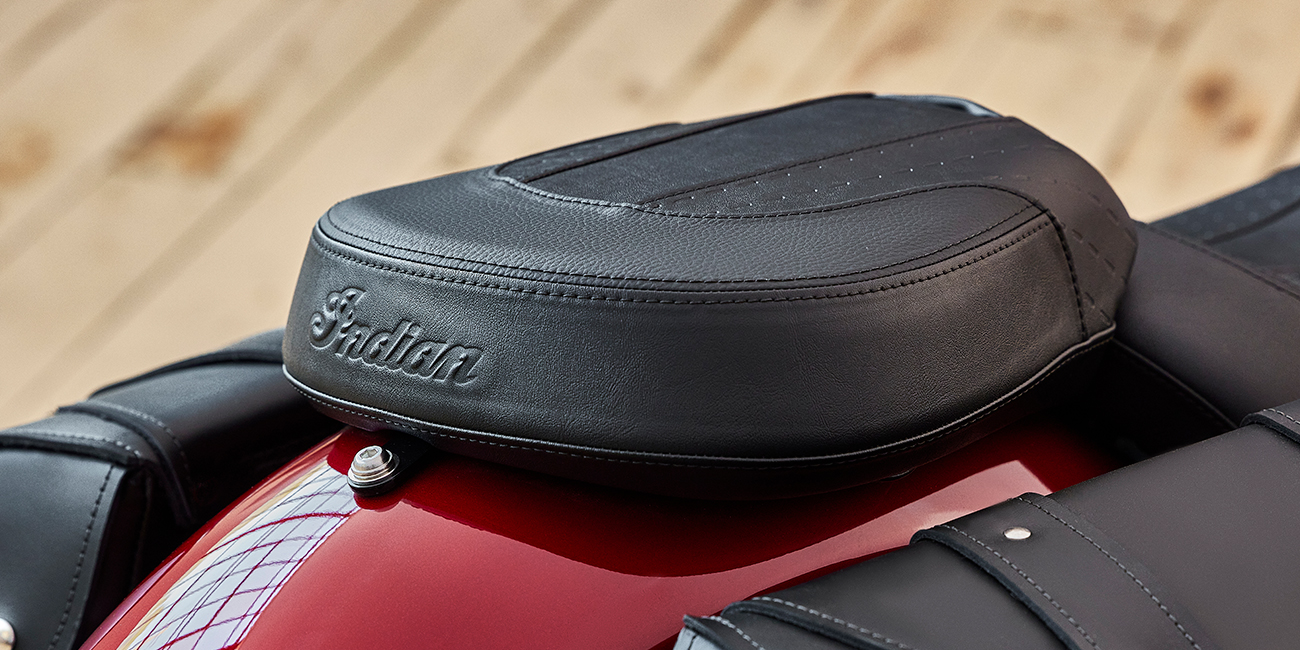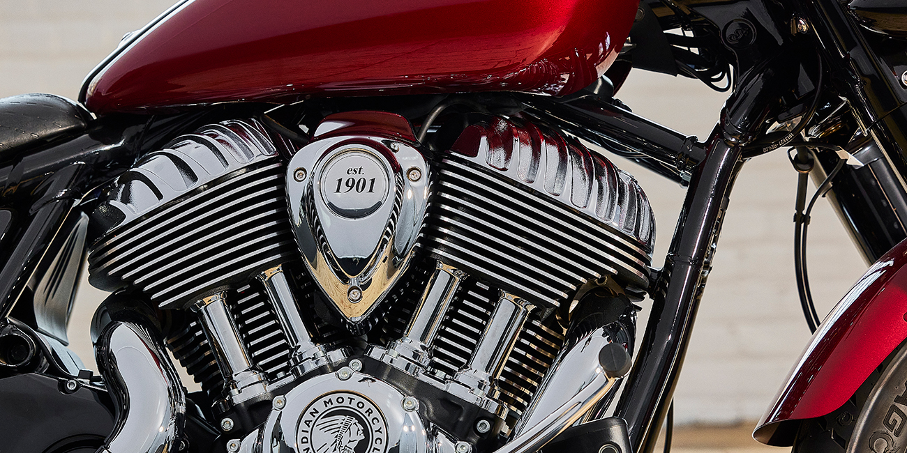 プレミアムクロームフィニッシュ、フロントフォークカバー、ワイヤーホイール、ヘッドライトナセル、アイコニックなインディアンモーターサイクルスクリプトバッジ。